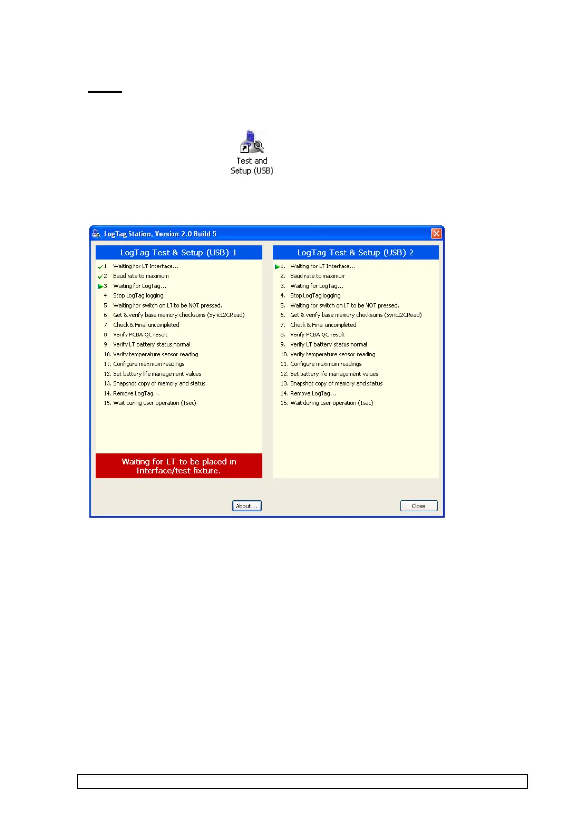 1 Turn on PC and start up “Test and Setup (USB) software (by selecting or double clicking Test &