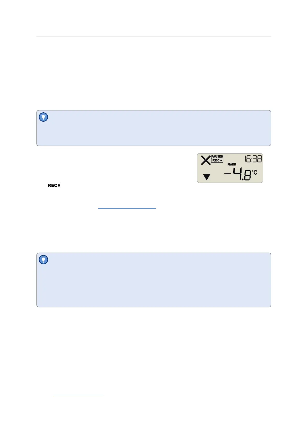 button. It will show longer, if the button is pressed just after the logger takes a