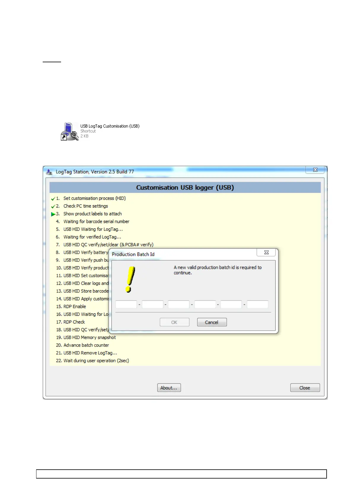 • Start up “USB LogTag Customisation (USB)” software (by selecting or double clicking USB LogTag