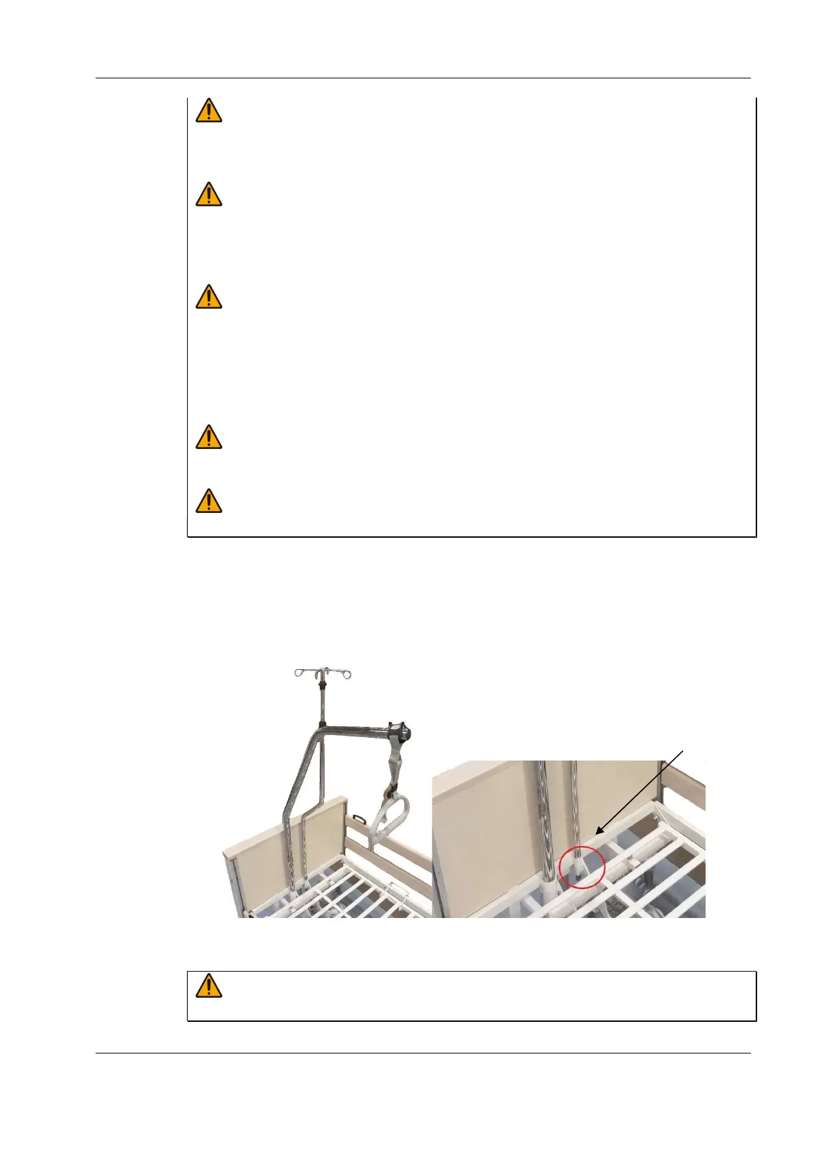The raised side rail is forbidden to use in a bed, where fixing brackets’
