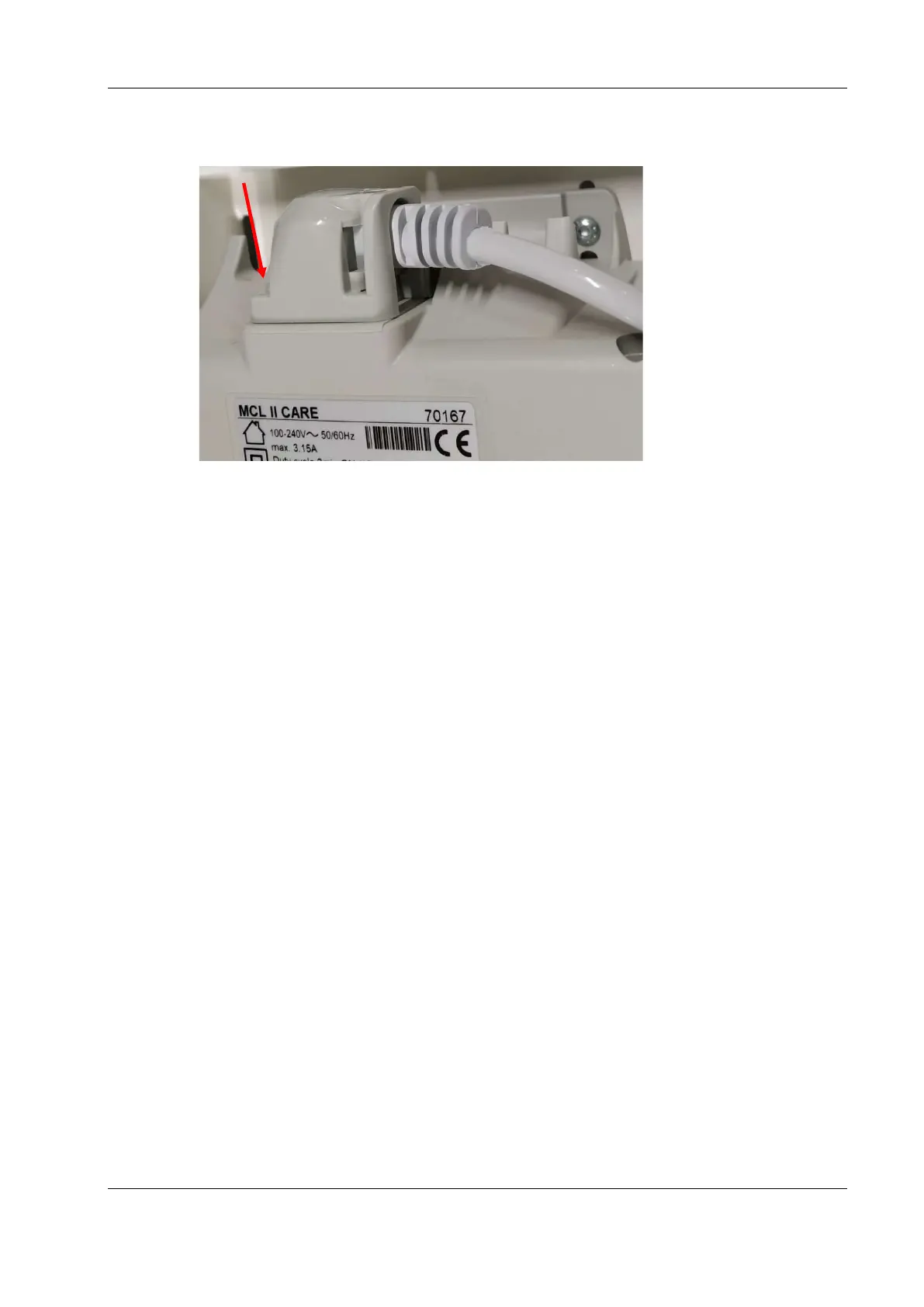 6. Detach the locking part of the power cord by pressing fastening clip open
