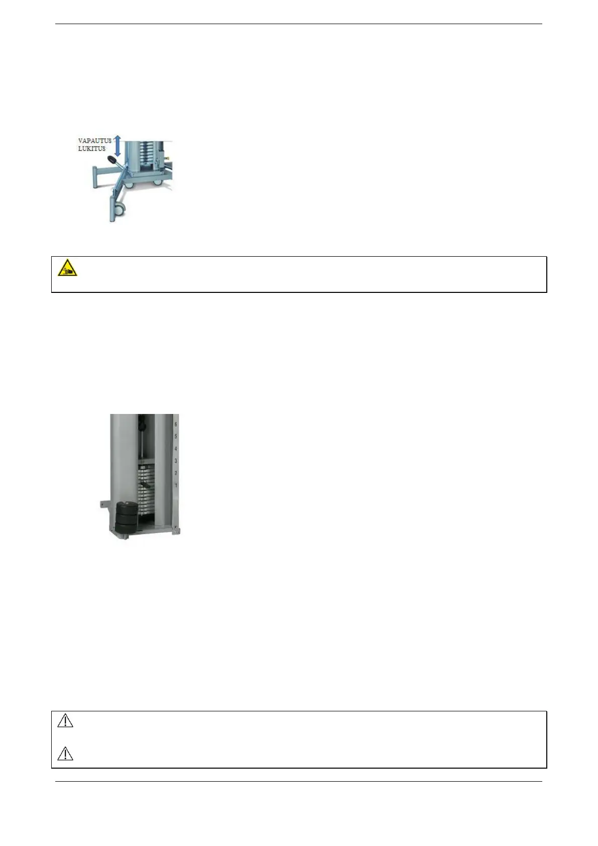 PURISTUMISVAARA! Varmista, ettei nosto- ja laskuliikkeen aikana laitteen alla ole tai sinne joudu