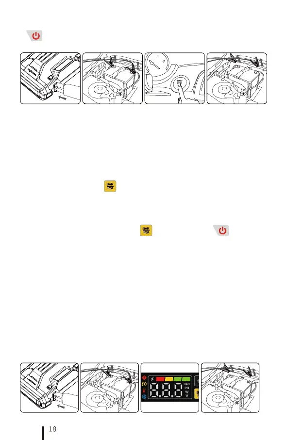 4.2 Verbinden Sie die rote(+) Klemme mit dem Pluspol(+) der Auto-Batterie und die schwarze(-) Klemme