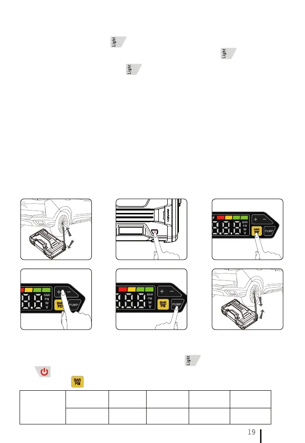 8.3 Sho press the " " button to switch the pressure unit of tire pressure: BAR, PSI.