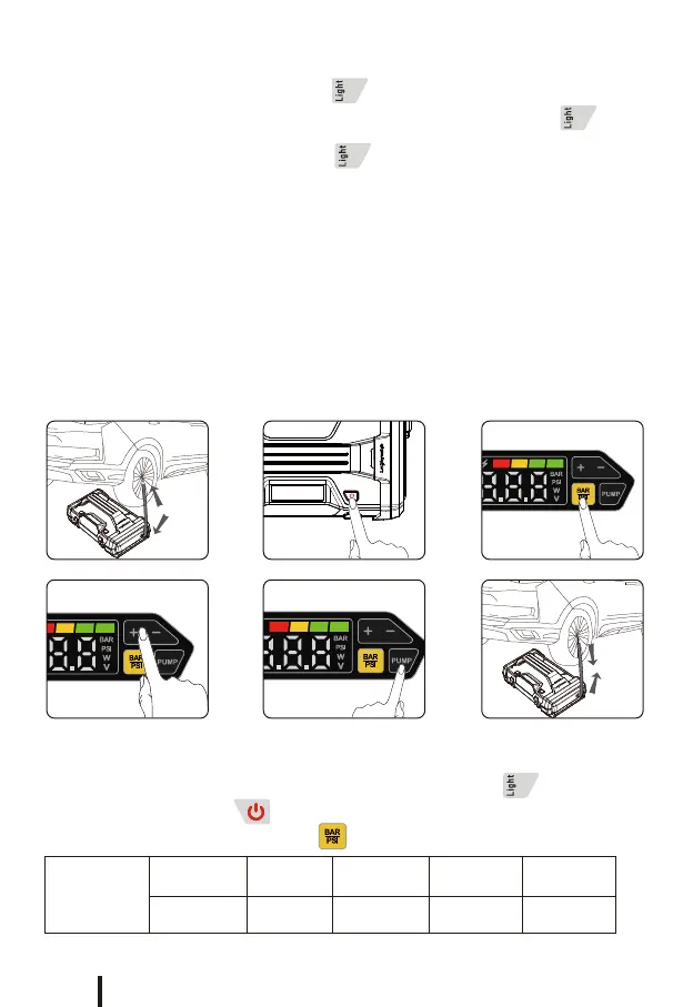 8.3 Appuyez brièvement sur le bouton “BAR/PSI ” pour basculer l’unité de pression du pneu : BAR,