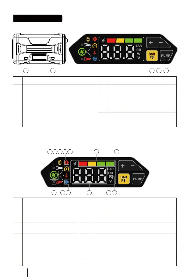Indicateur de pince positive (Ve: Bonne connexion. Jaune: mauvaise connexion)