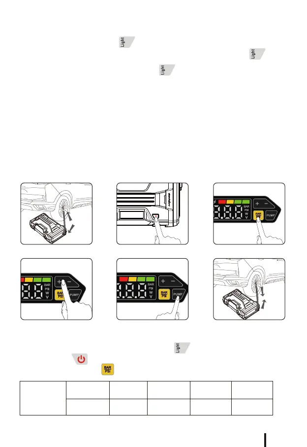 8.3 Pulse brevemente el botón " " para cambiar la unidad de presión de los neumáticos: BAR, PSI.