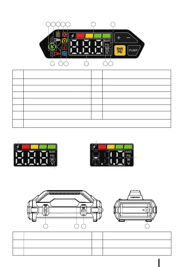 LOKITHOR ja302 pro - 屏幕说明; 功能说明; 充电显示说明; 放电显示说明
