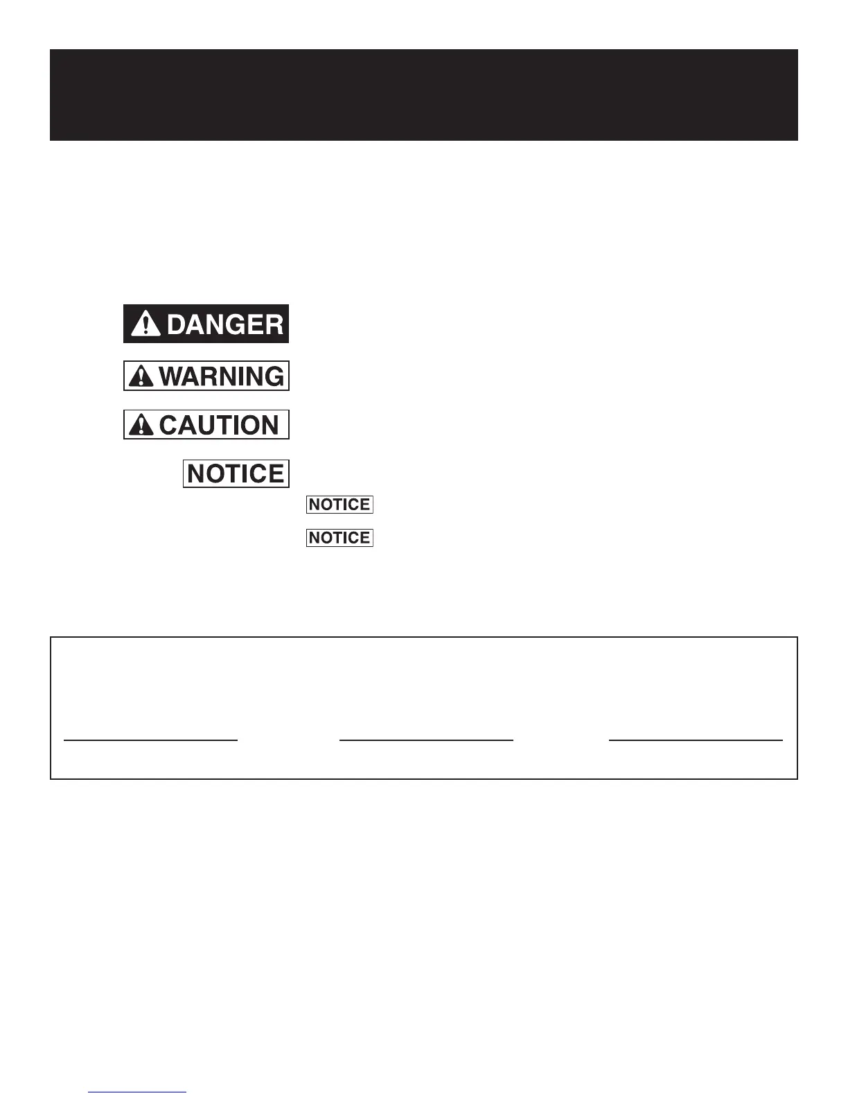 Please record this information and retain this manual for the life of the equipment. For Warranty Service