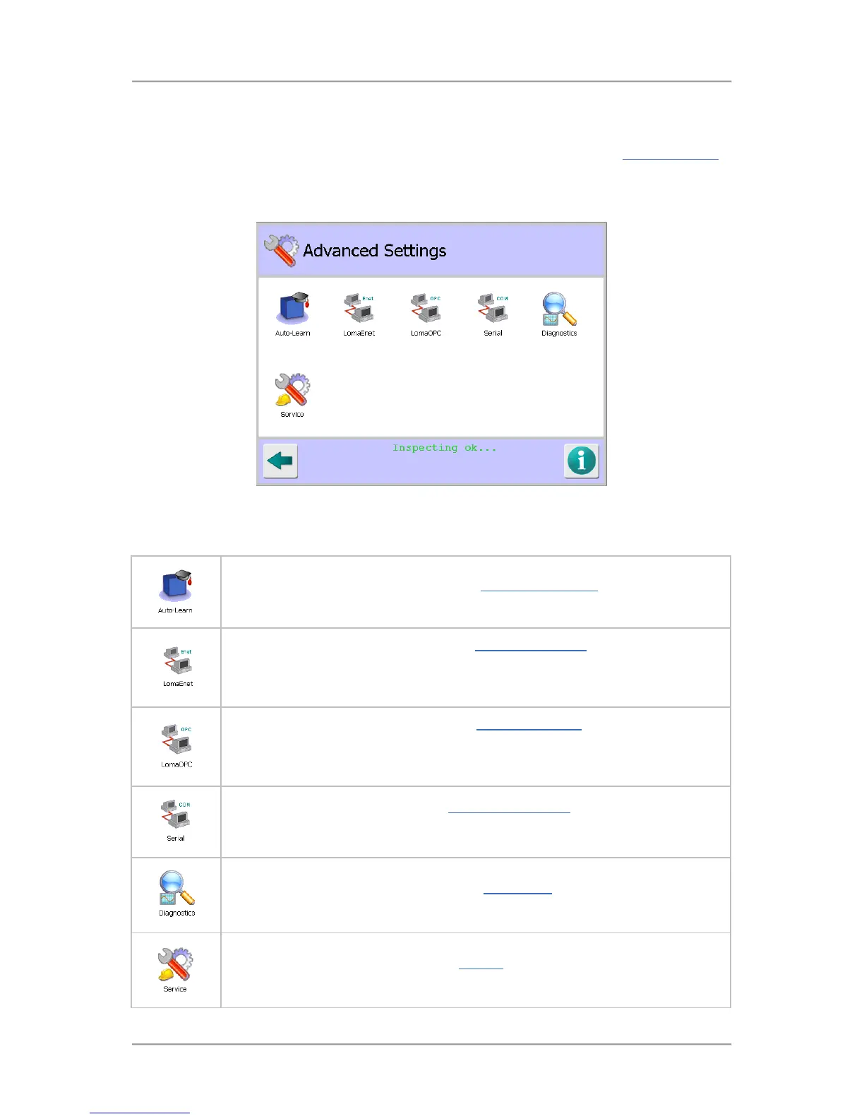 The Advanced Settings screen is displayed by tapping on the Advanced icon in the System Settings