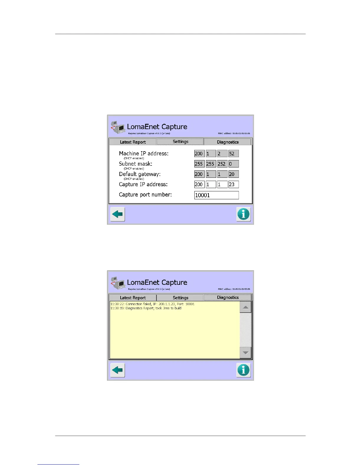 IP address and Port number for the server on which the LomaEnet Capture application has