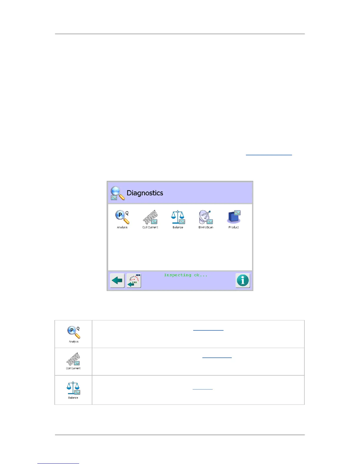 The Diagnostics screen is displayed by tapping on the Diagnostics icon in the Advanced Settings