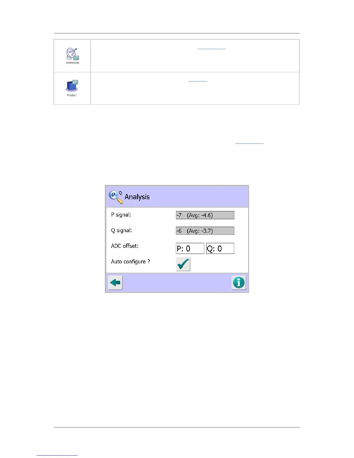 Tap on this button to set the P and Q ADC offset values automatically. Ensure that the readings