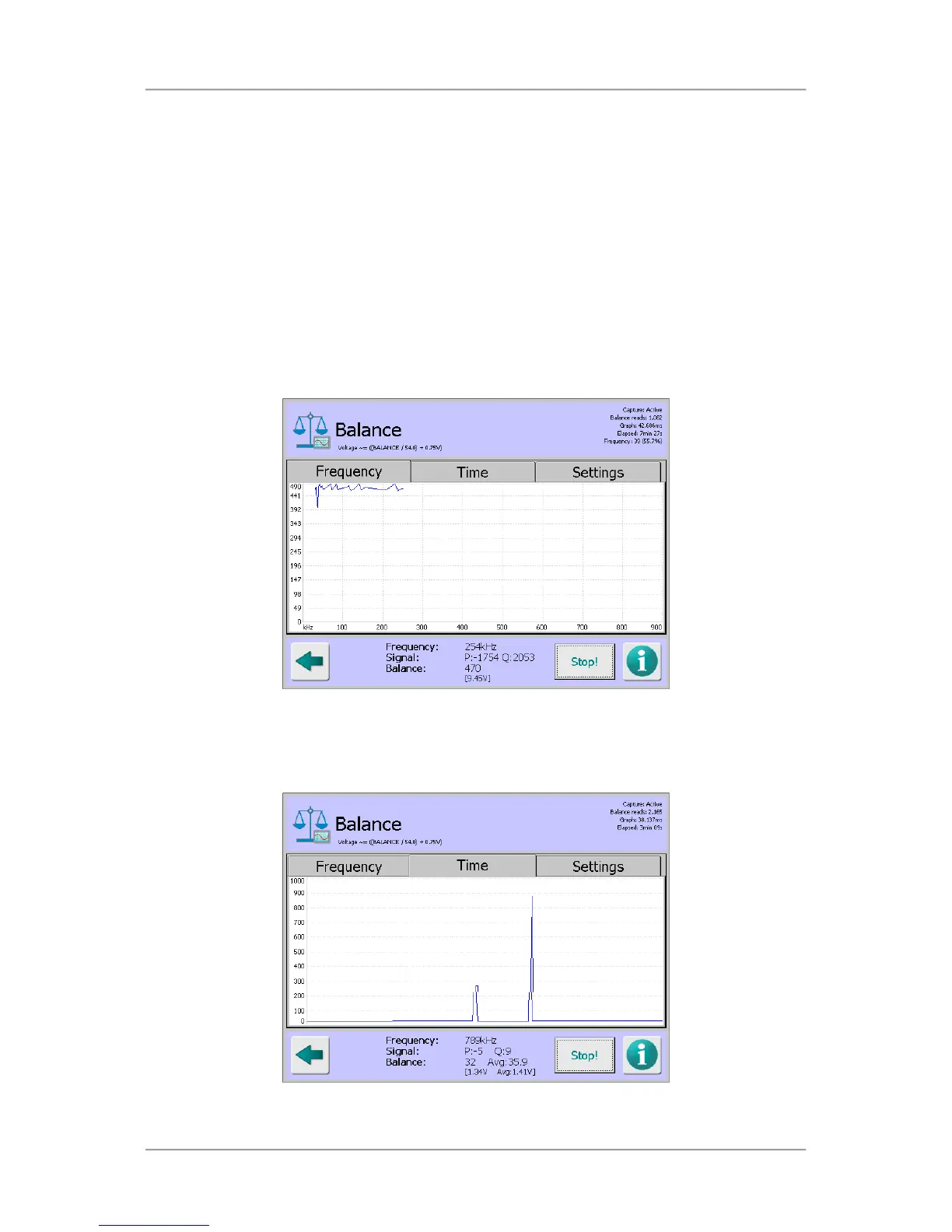 balance value at the currently set frequency and displays a scrolling graph of that signal over