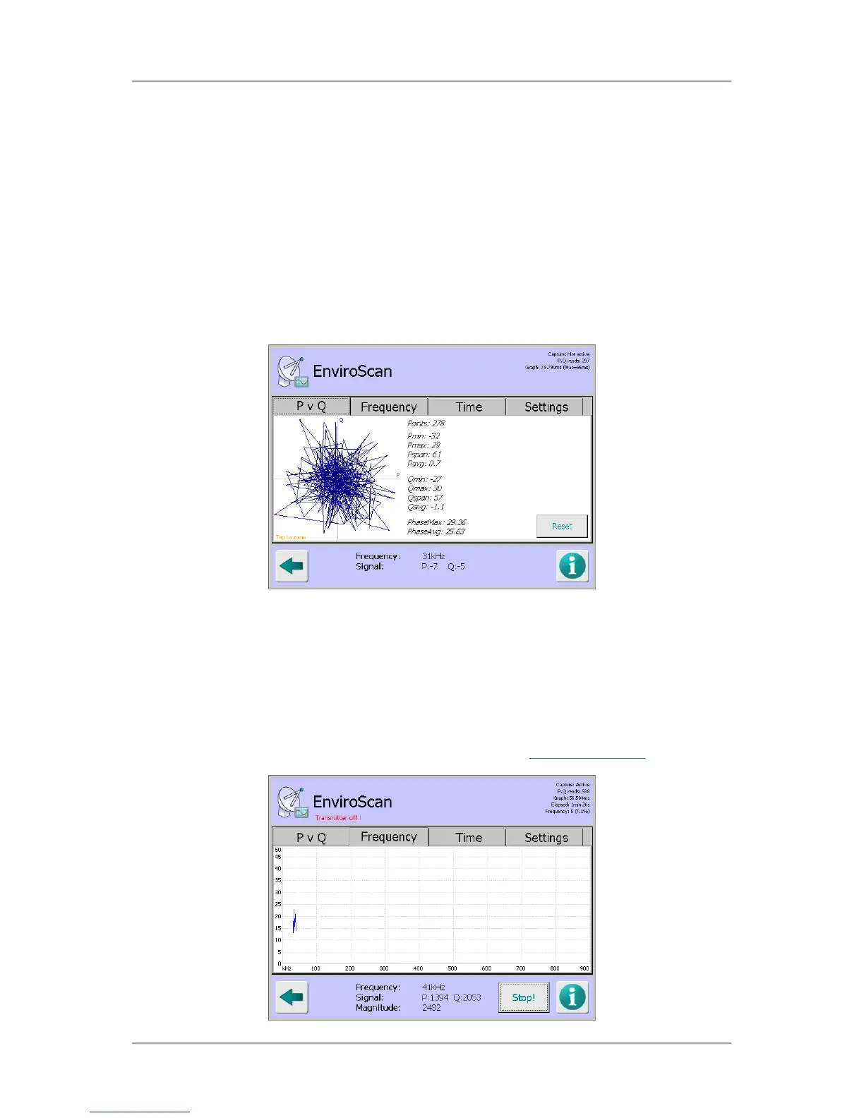 Tapping on the Reset button with the P v Q tab selected starts a process that captures a