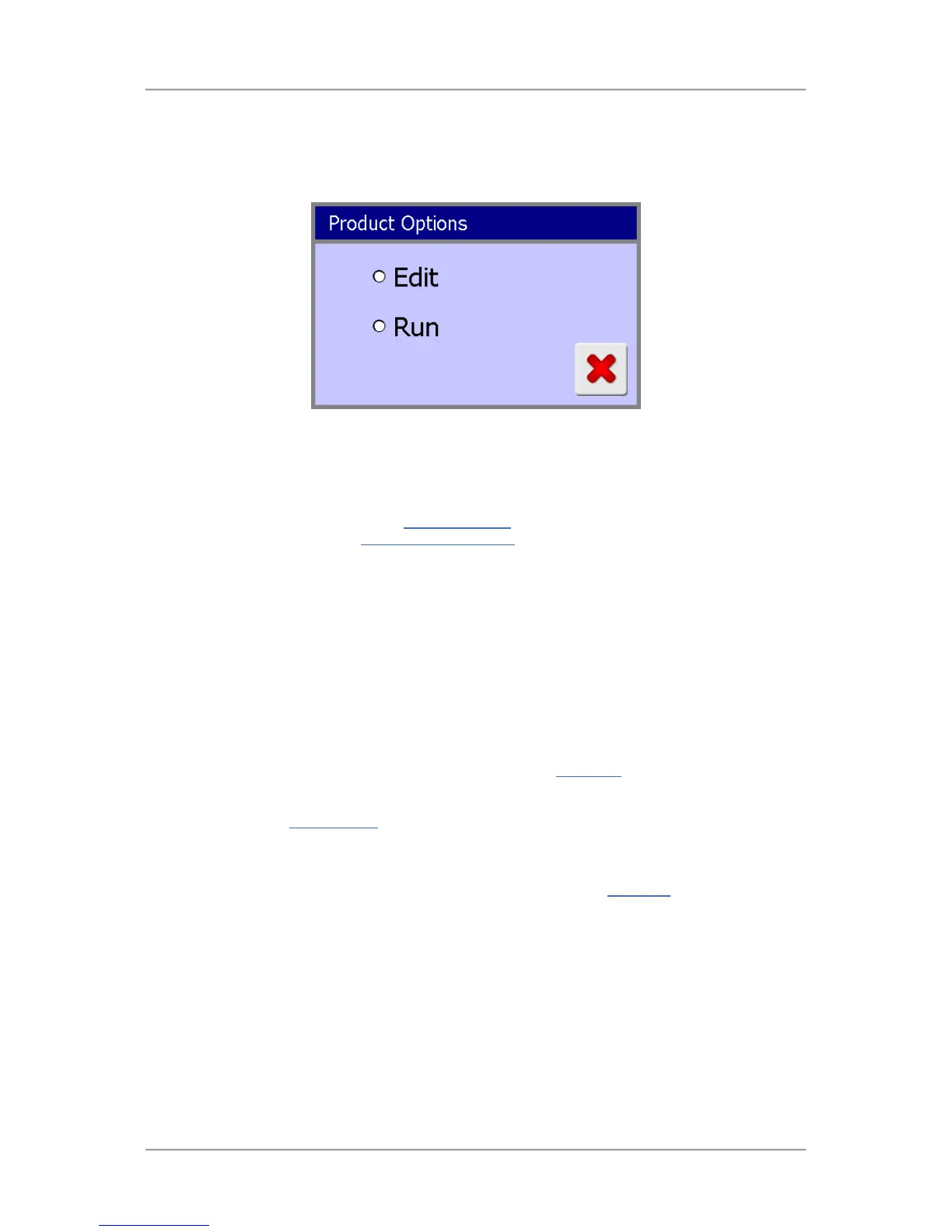 The Product Options screen is then automatically closed and the Main Run screen is displayed.