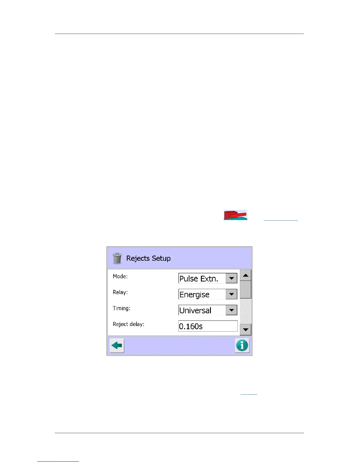 The Rejects Setup screen is displayed by tapping on the Reject area