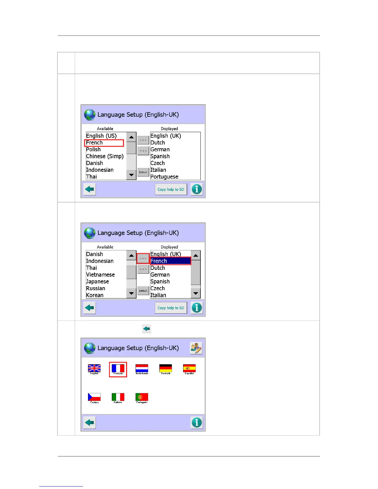 6. Tap on the right arrow button in the centre of the screen to move the French entry across to