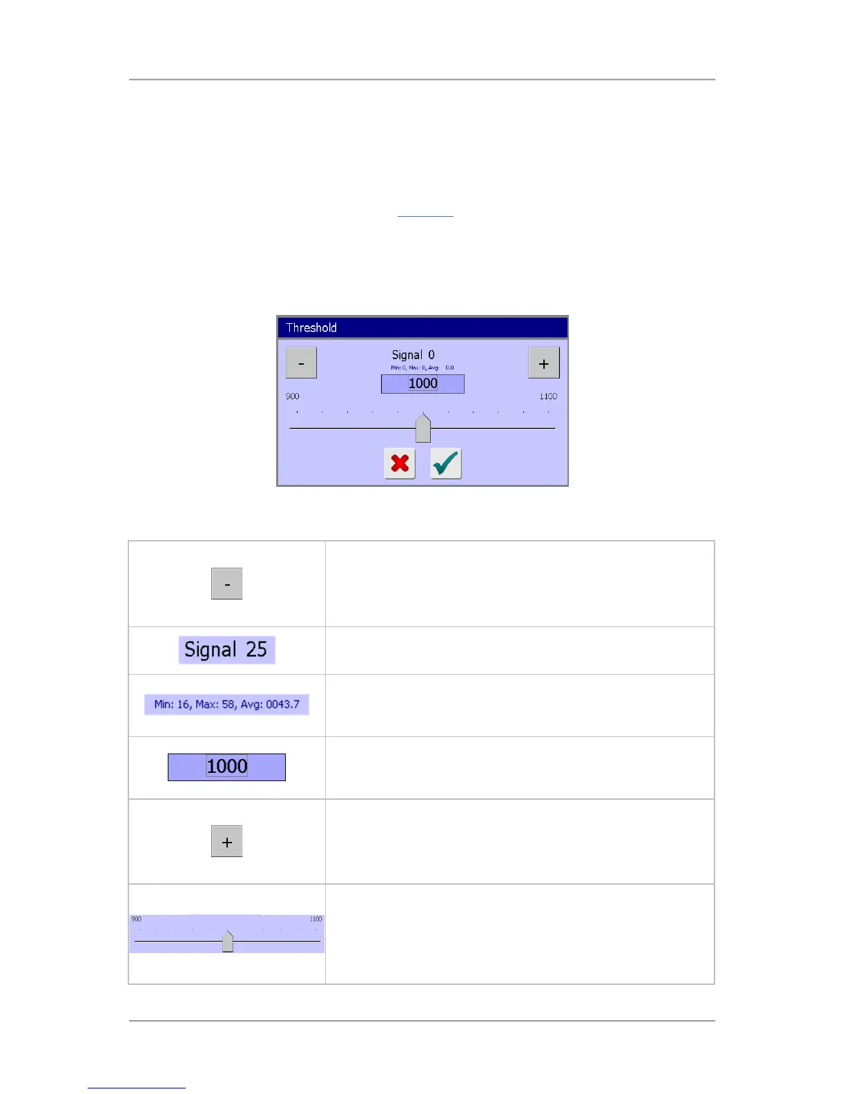 Tapping on the threshold value displays the pop-up Threshold screen through which you can adjust