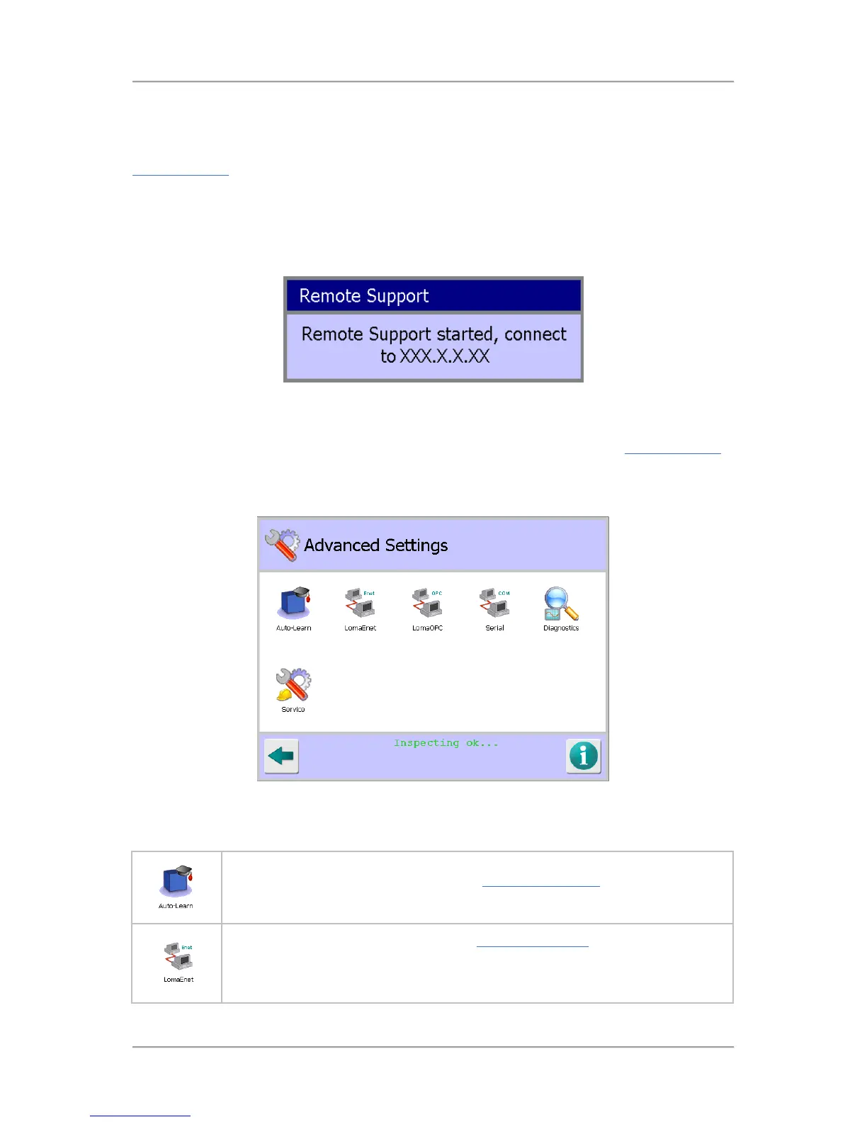 If the metal detector has been connected to a network, tapping on the Remote Support icon in the