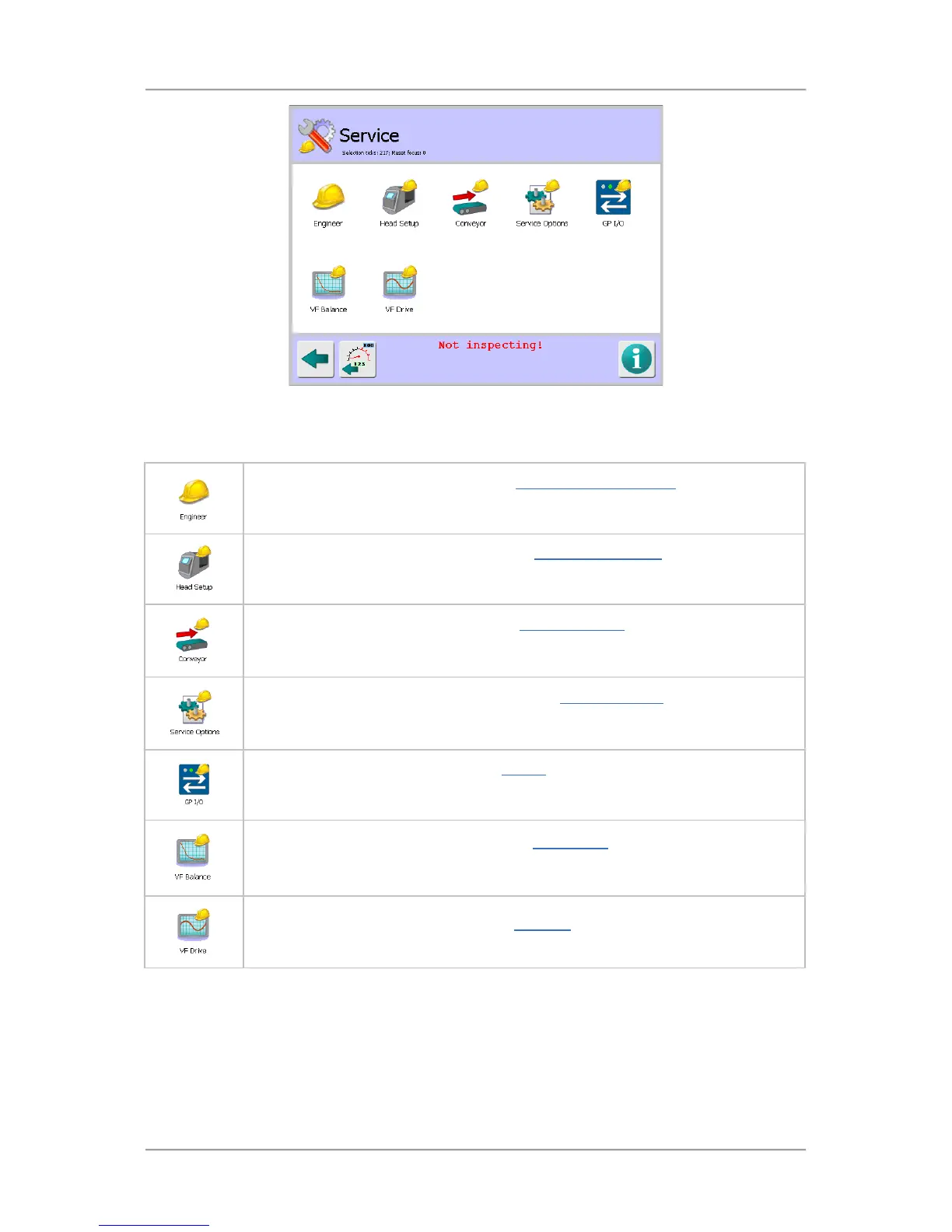 Tap on the Engineer icon to display the Engineer / Loma Service screen in which