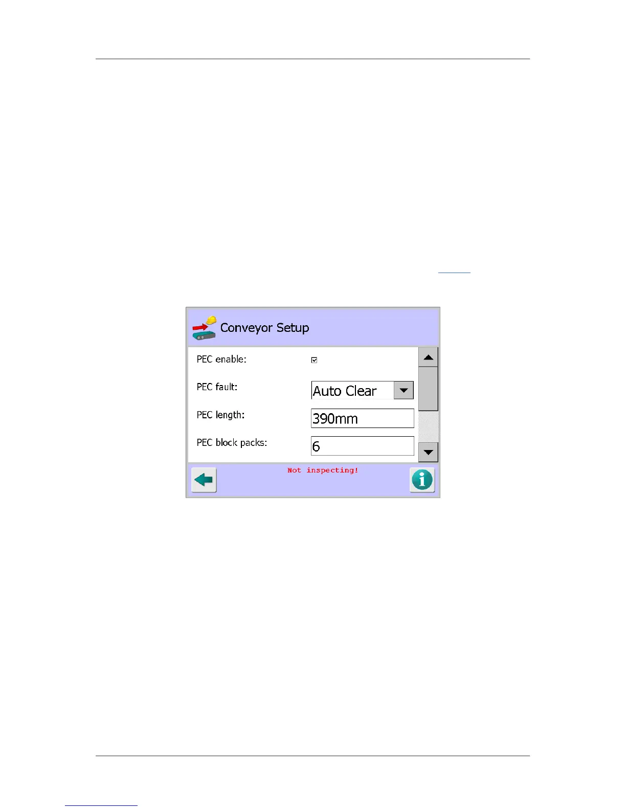 The purpose of the screen is to enable you to set up the conveyor based on the optional items fitted