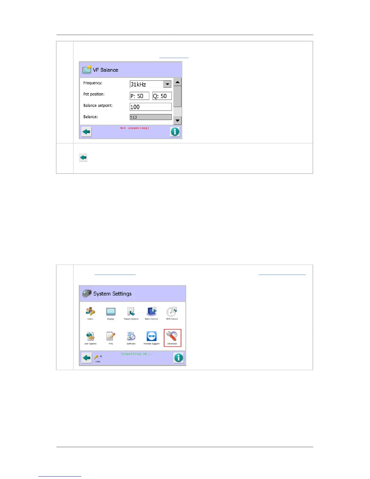 set up the VF Balance. See the VF Balance screen section for further details.