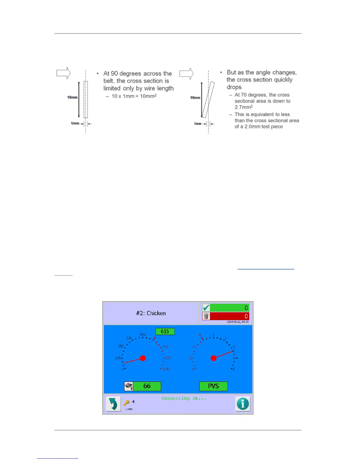 across the conveyor belt so that the contaminant is presented at a different angle to both detectors.