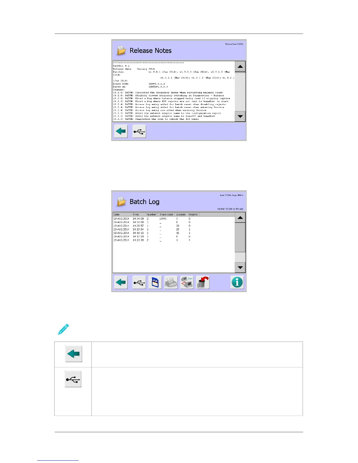 A number of icons are displayed at the bottom of the screen as shown in the example Batch Log