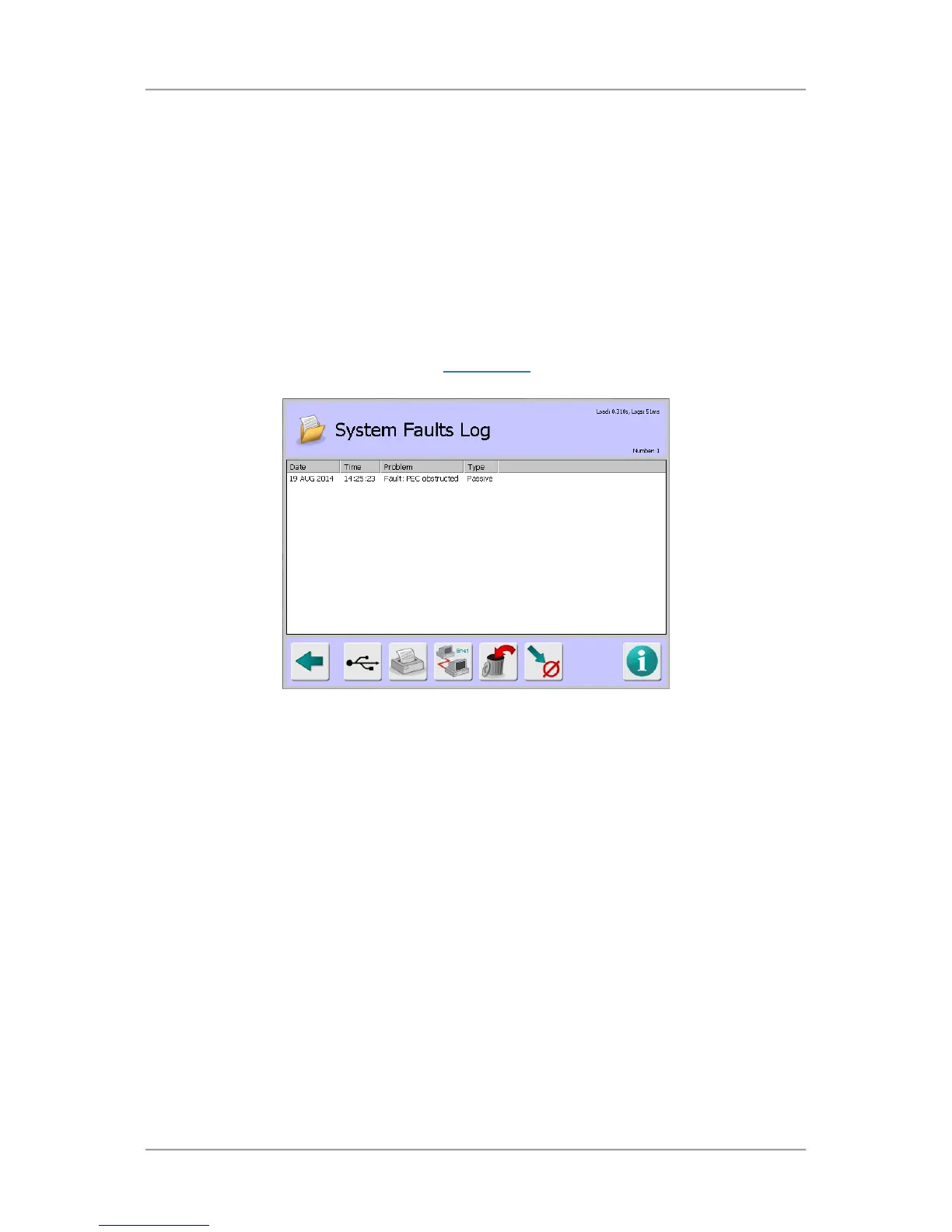 screen displays the System Faults Log