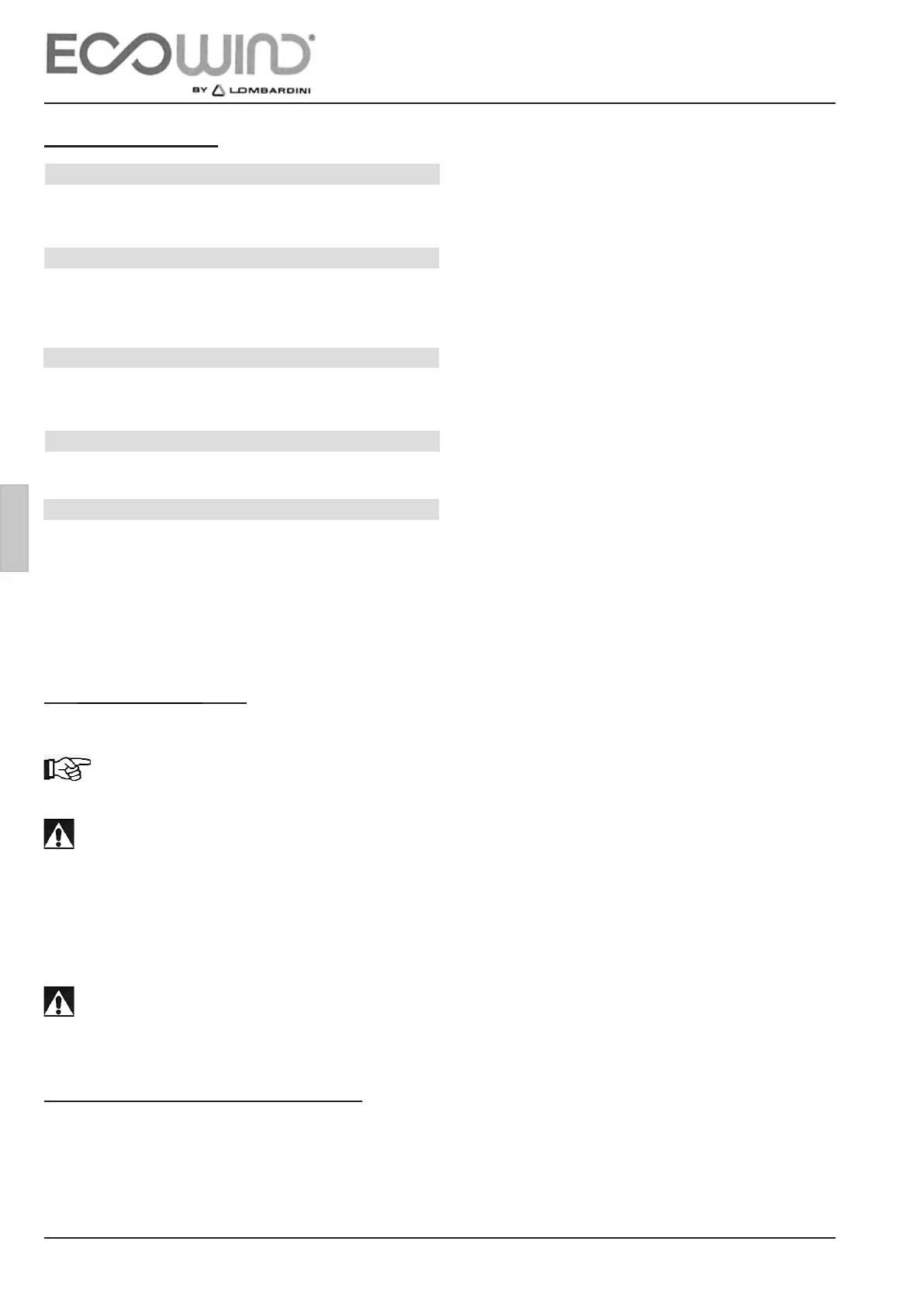 ECOWIND by Lombardini declines all responsibility for damage caused to persons or things resulting from incorrect installation