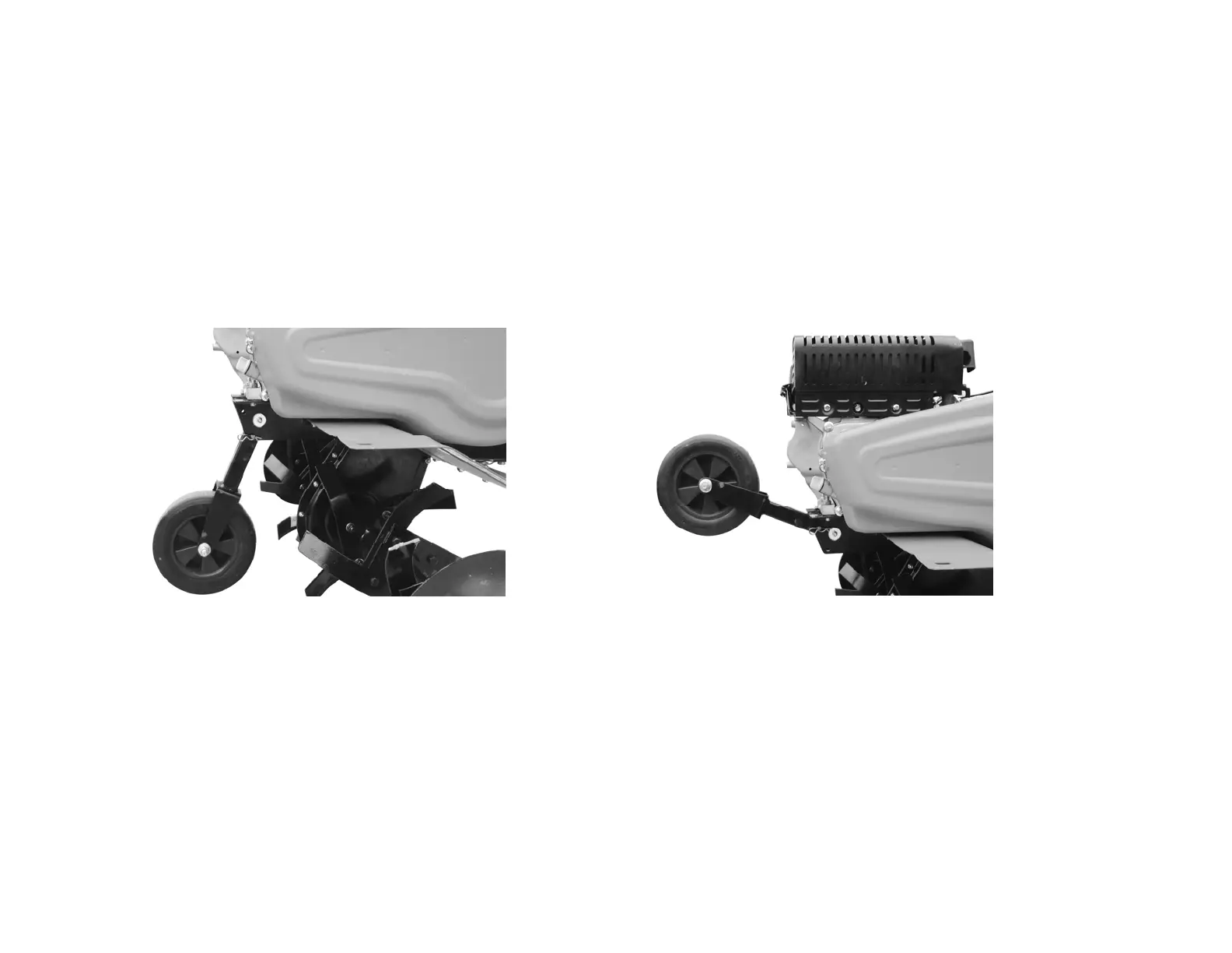 1Adjust front wheel of tiller to the state shown in Fig. 15 when it is going to drive on the road.