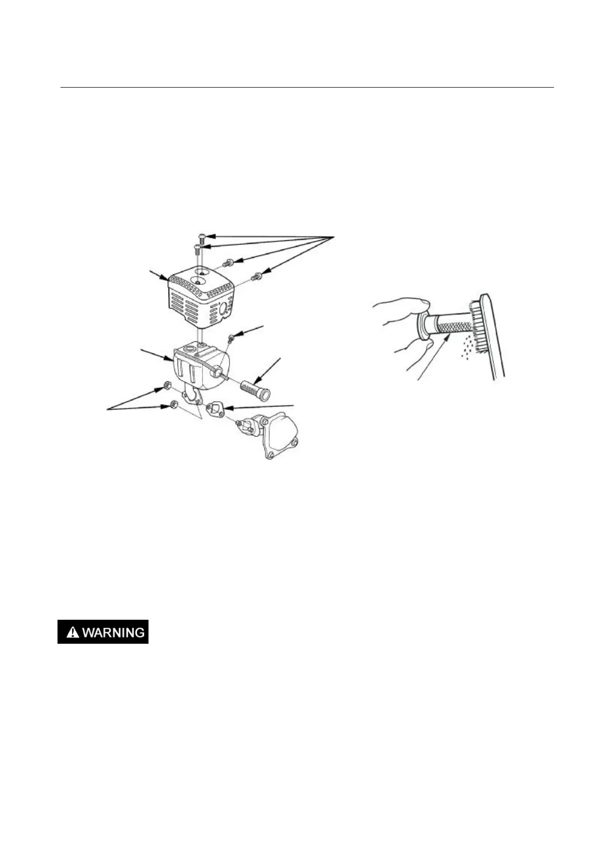 5. Installez l'intercepteur d'étincelle, le protecteur de silencieux, et le déflecteur d'échappement