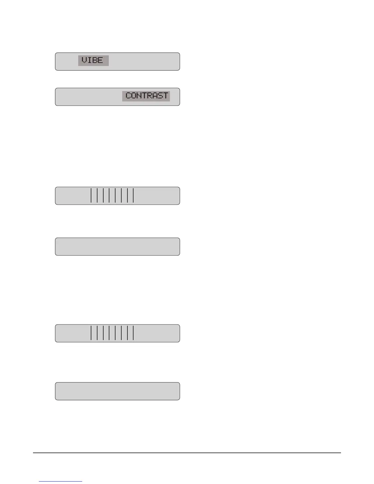 To access the vibe/contrast menu, remove the pager from the charger. While vibrating or beeping, press