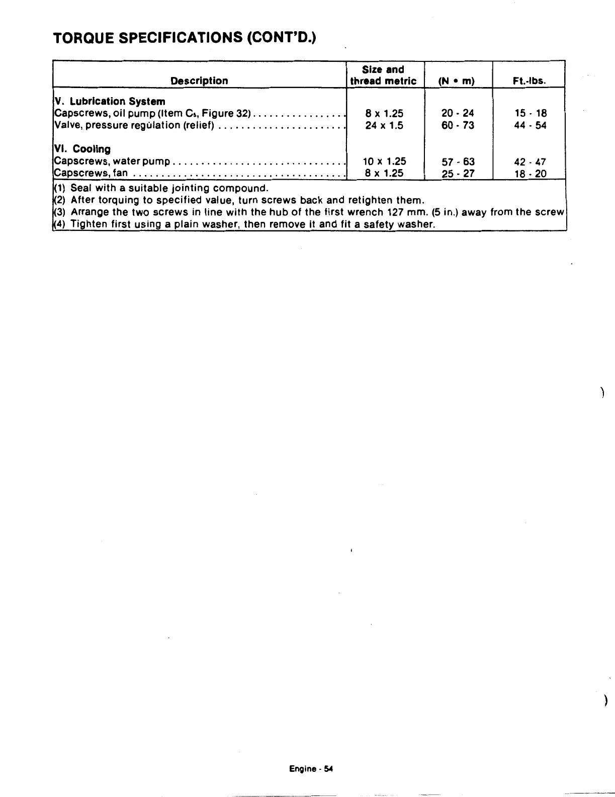 TORQUE SPECIFICATIONS (CONT'D.)