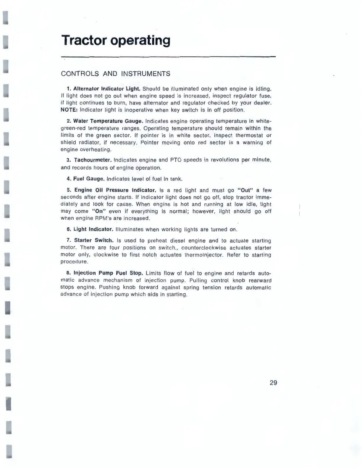 3. Tachourmeter. Indicates engine and PTO speeds in revolutions per minute,