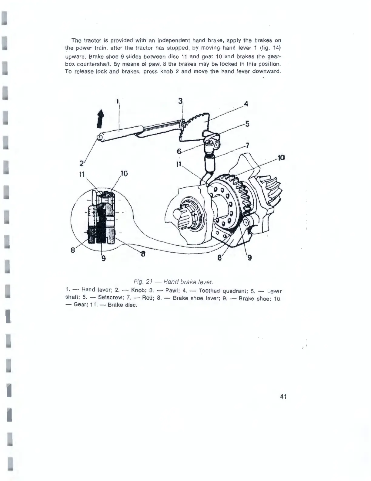 the power train, after the tractor has stopped, by moving hand lever 1 (fig.