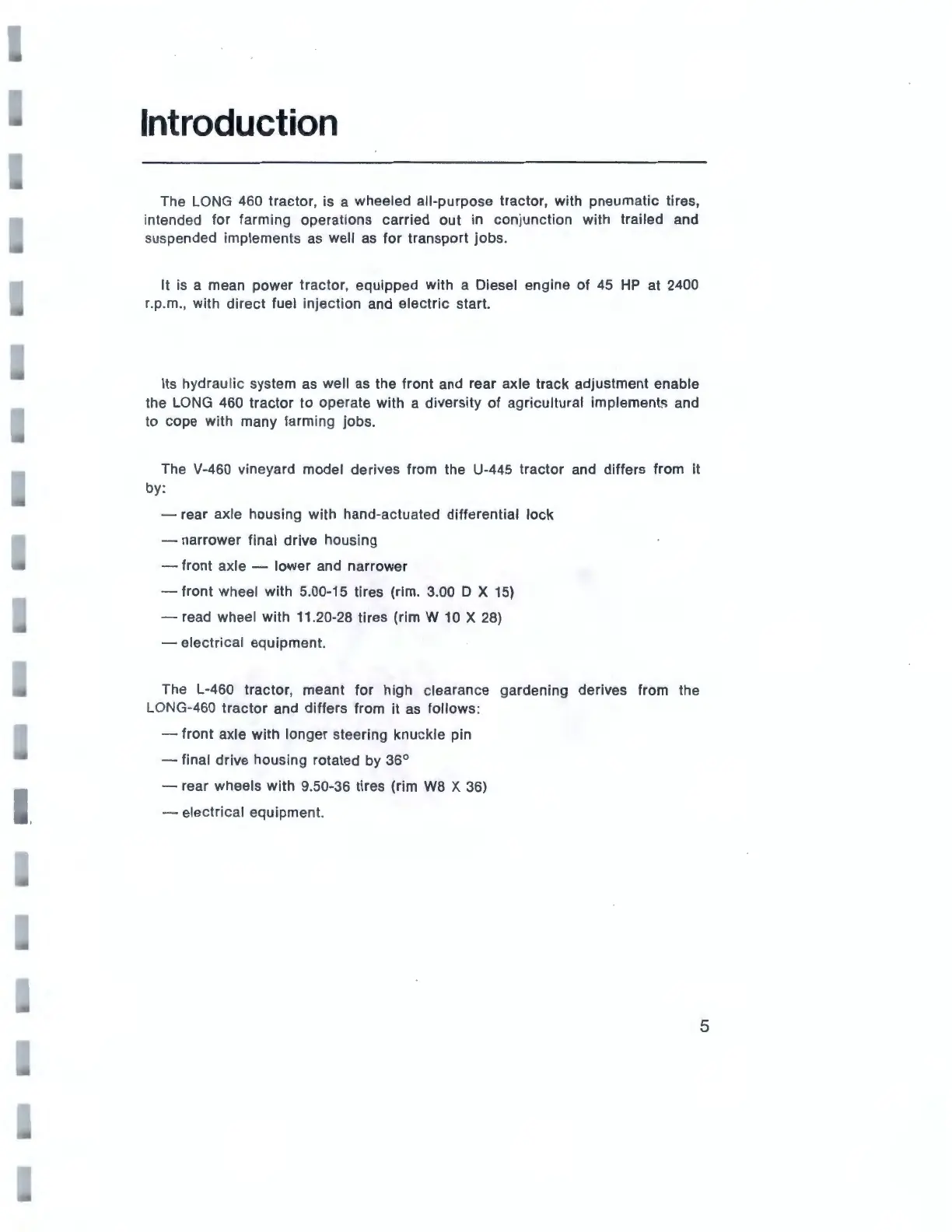 V-460 vineyard model derives from the U-445 tractor and differs from it