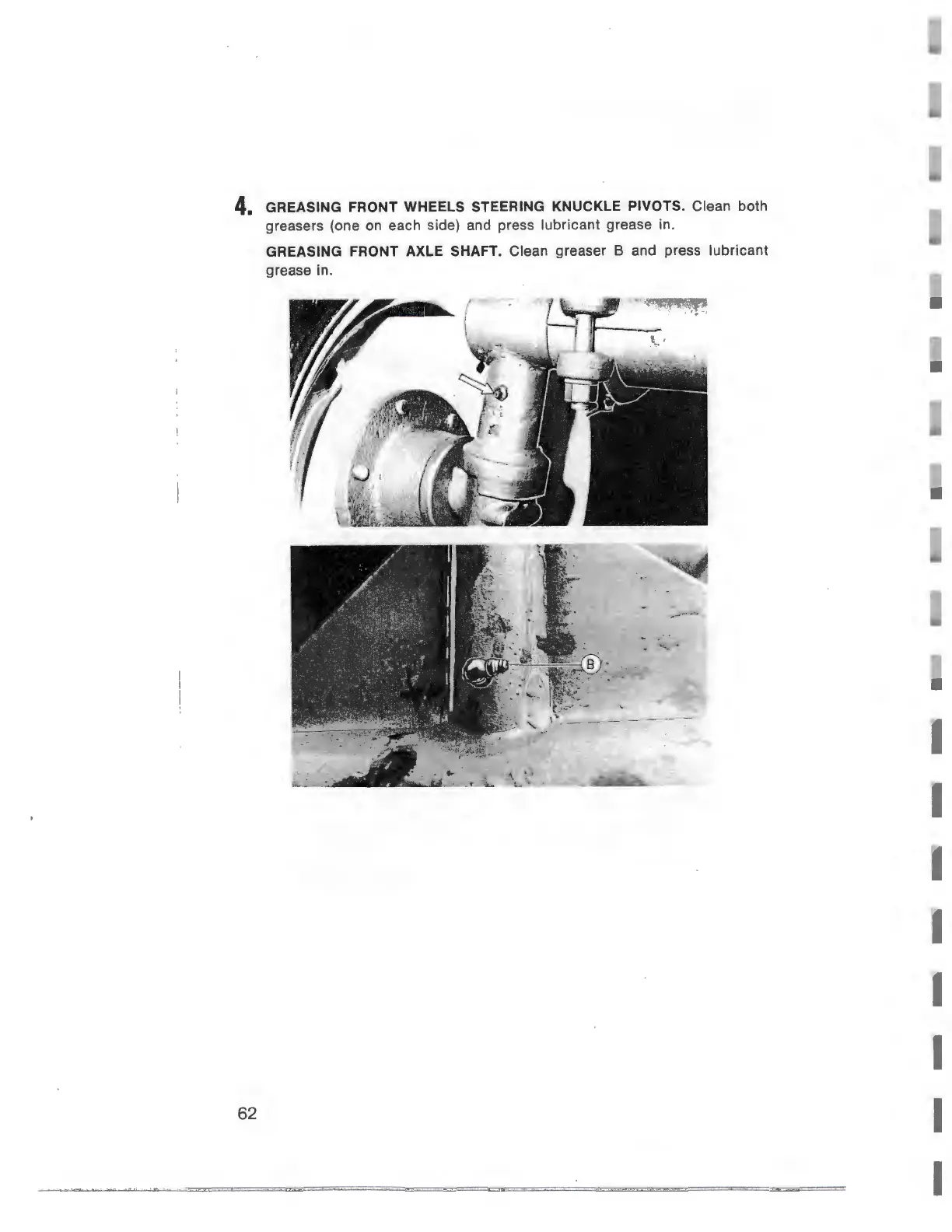 GREASING FRONT AXLE SHAFT. Clean greaser B and press lu