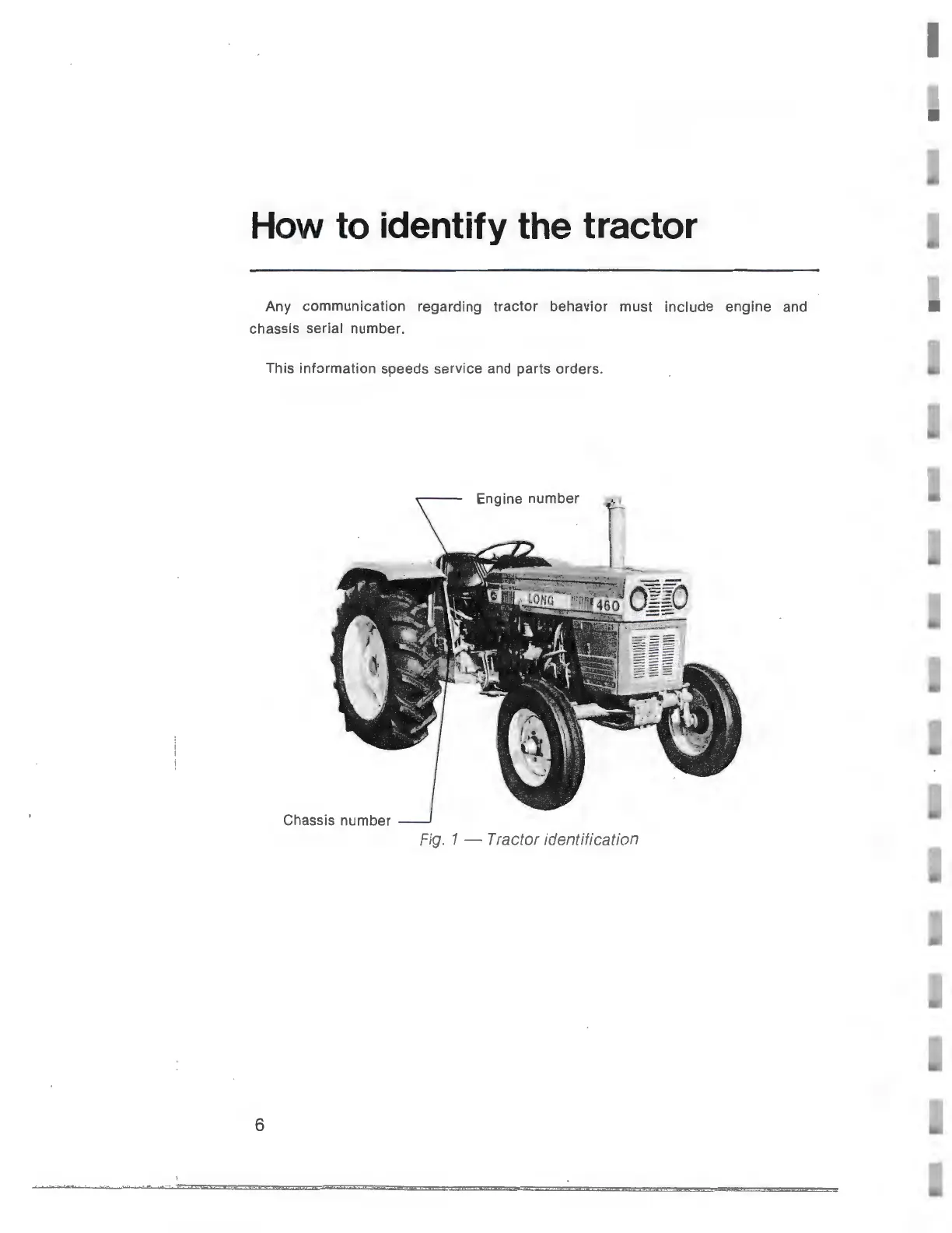 Long 460 - TRACTOR IDENTIFICATION; Engine and Chassis Numbers