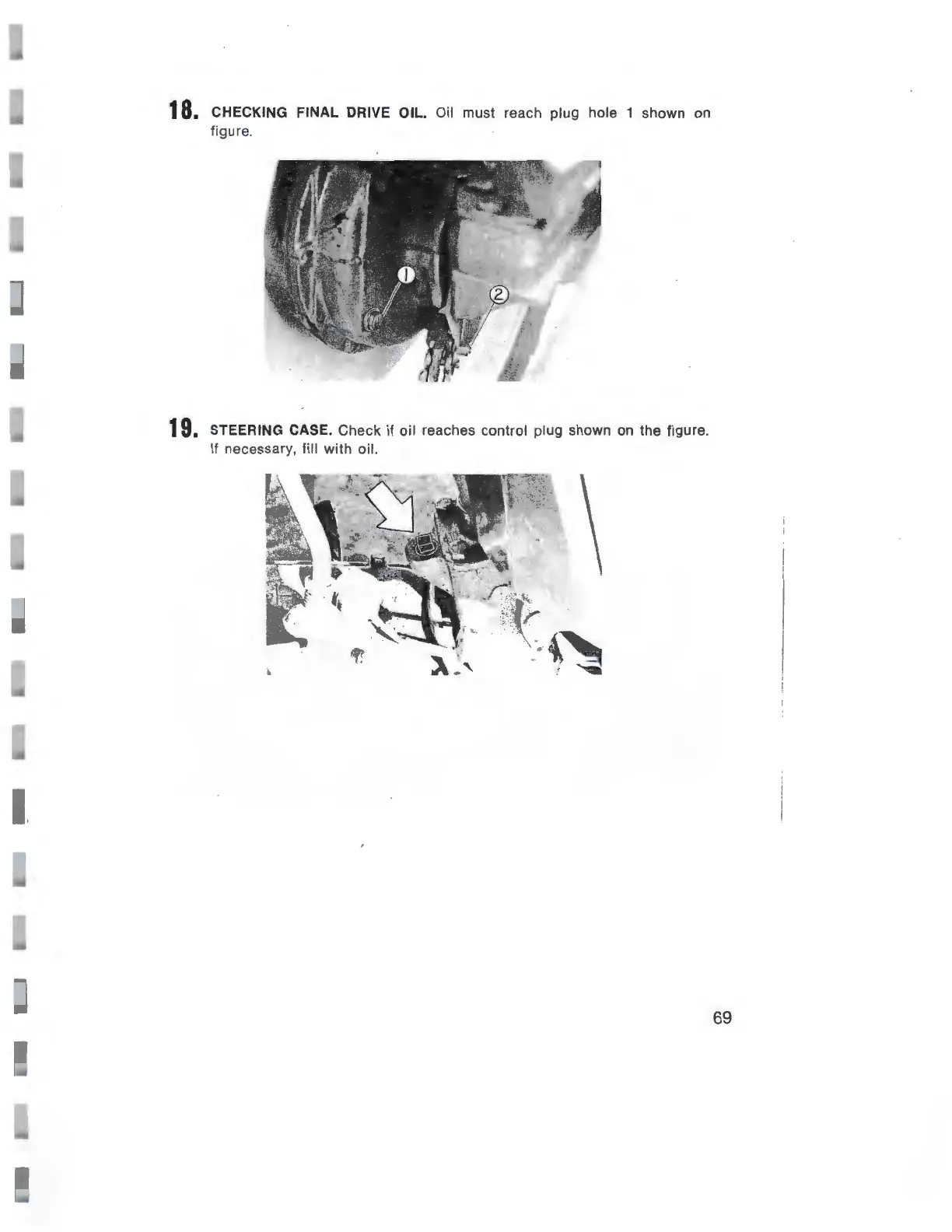 CHECKING FINAL DRIVE OIL. Oil must reach plug hole 1 shown on
