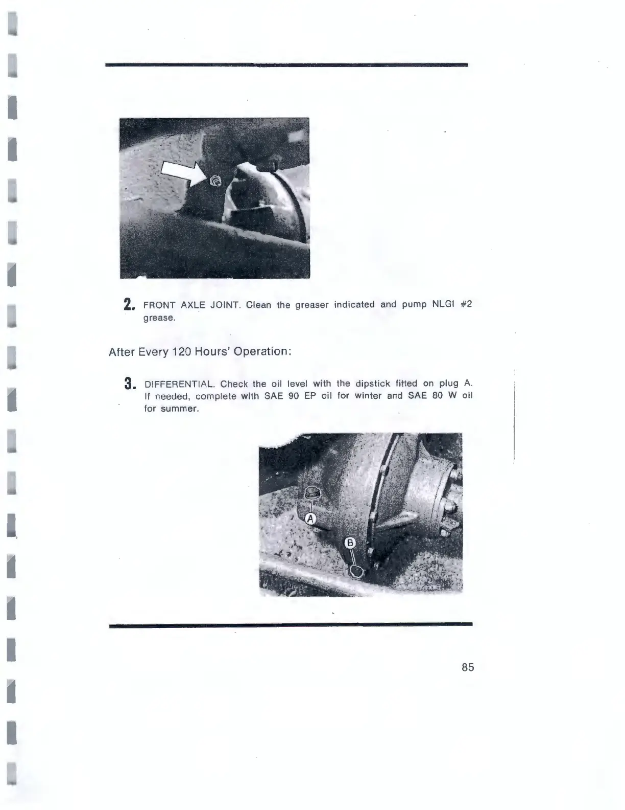 Long 460 - Front Axle Joint Greasing; Differential Oil Level Check