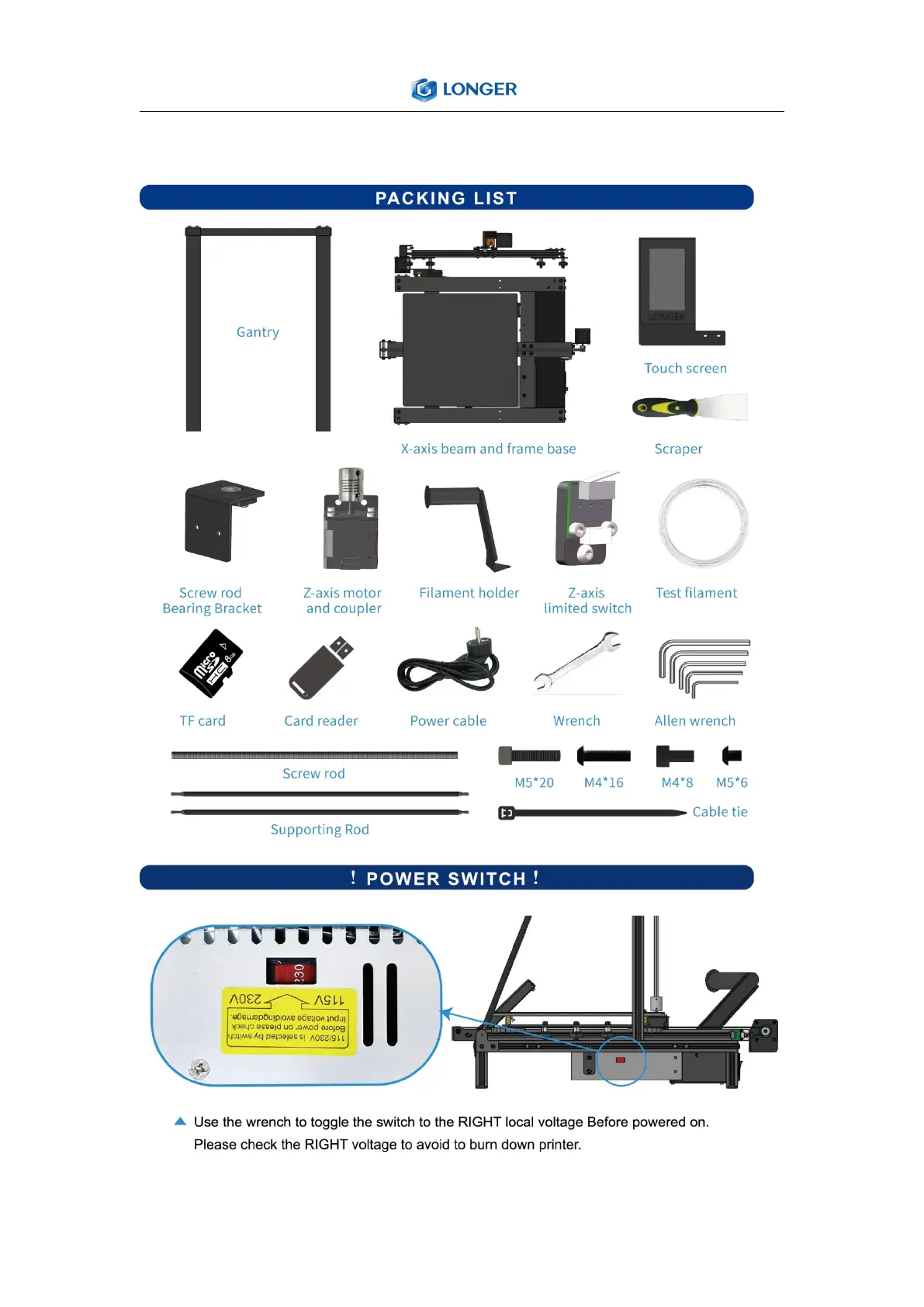 LONGER LK 5 PRO - Packing List