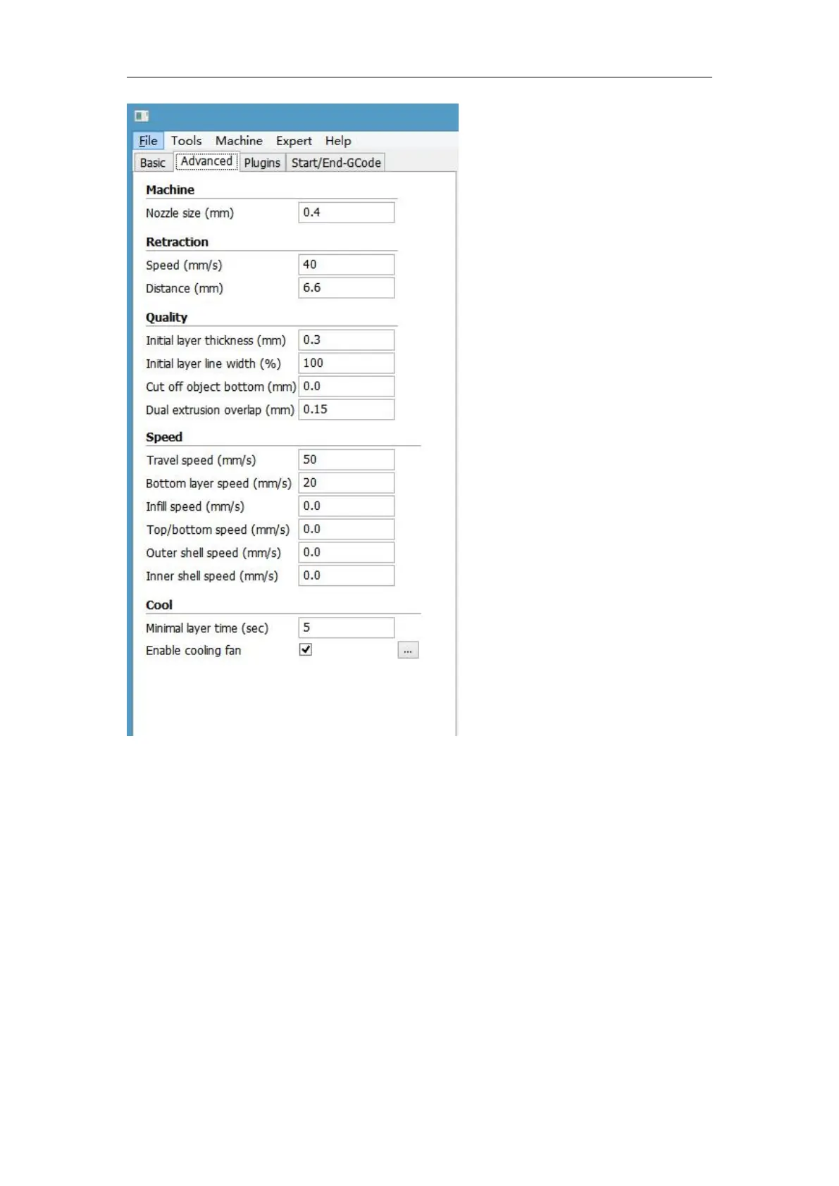 Enable cooling fan: To cool the temperature of nozzle.
