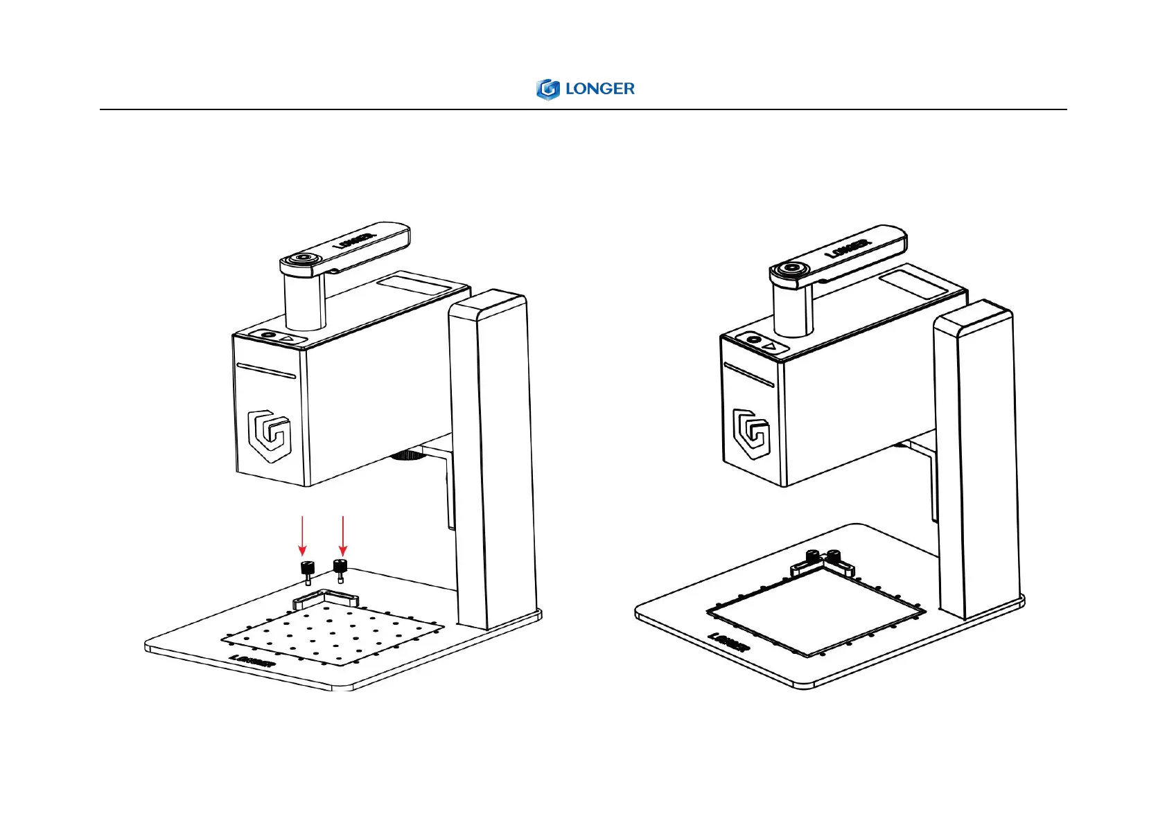 1) Place the base plate and tighten the two M3X8