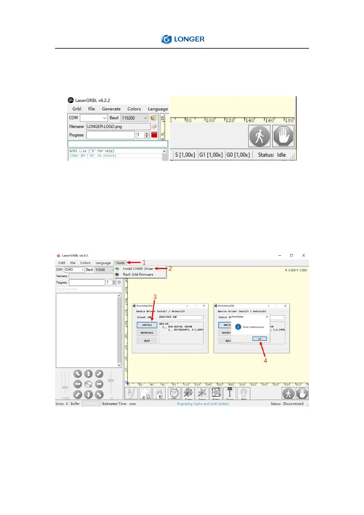 to Install CH340 Driver from LaserGRBL software.
