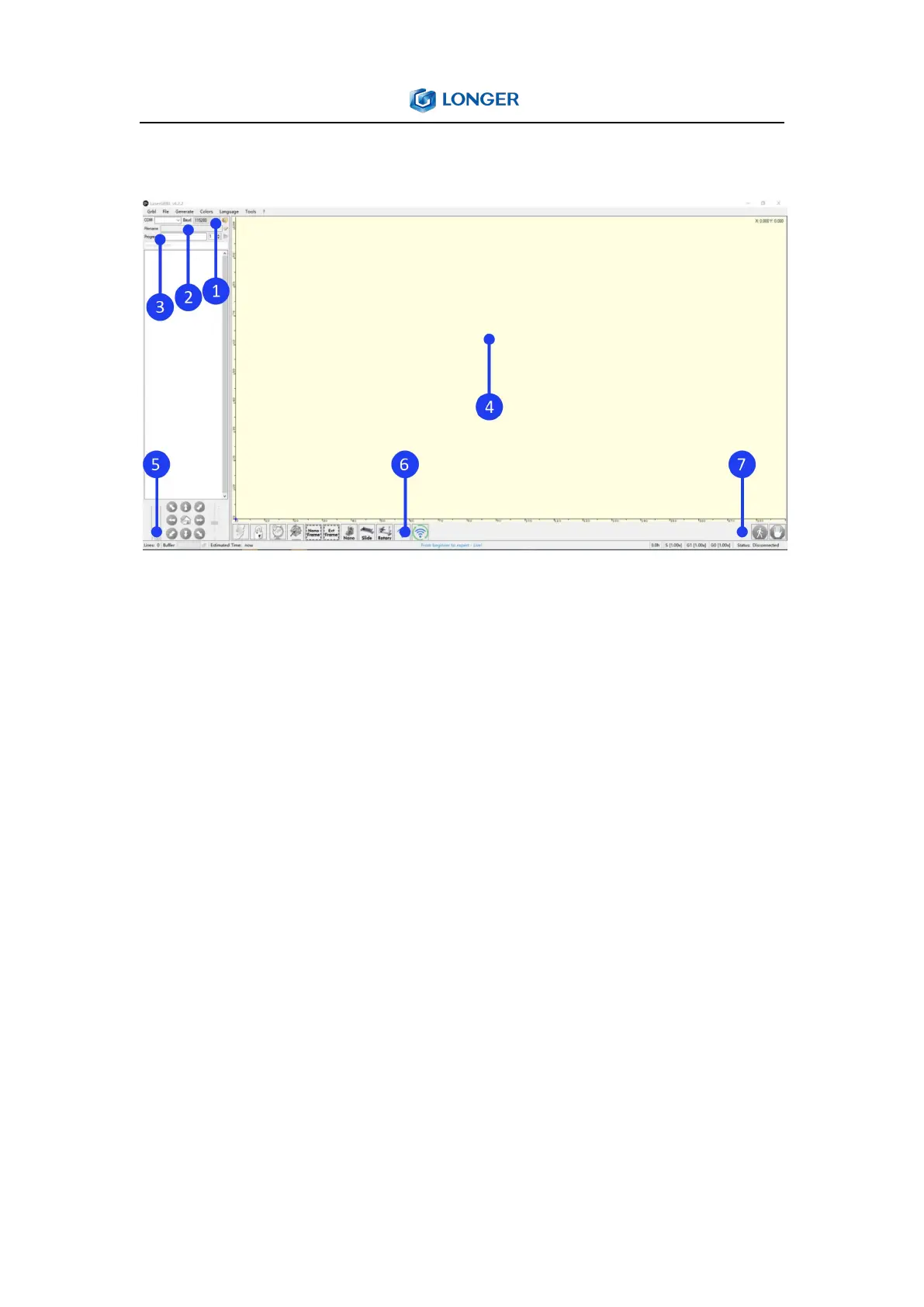 ⑤ Jogging control: allow manual positioning of the laser. The left