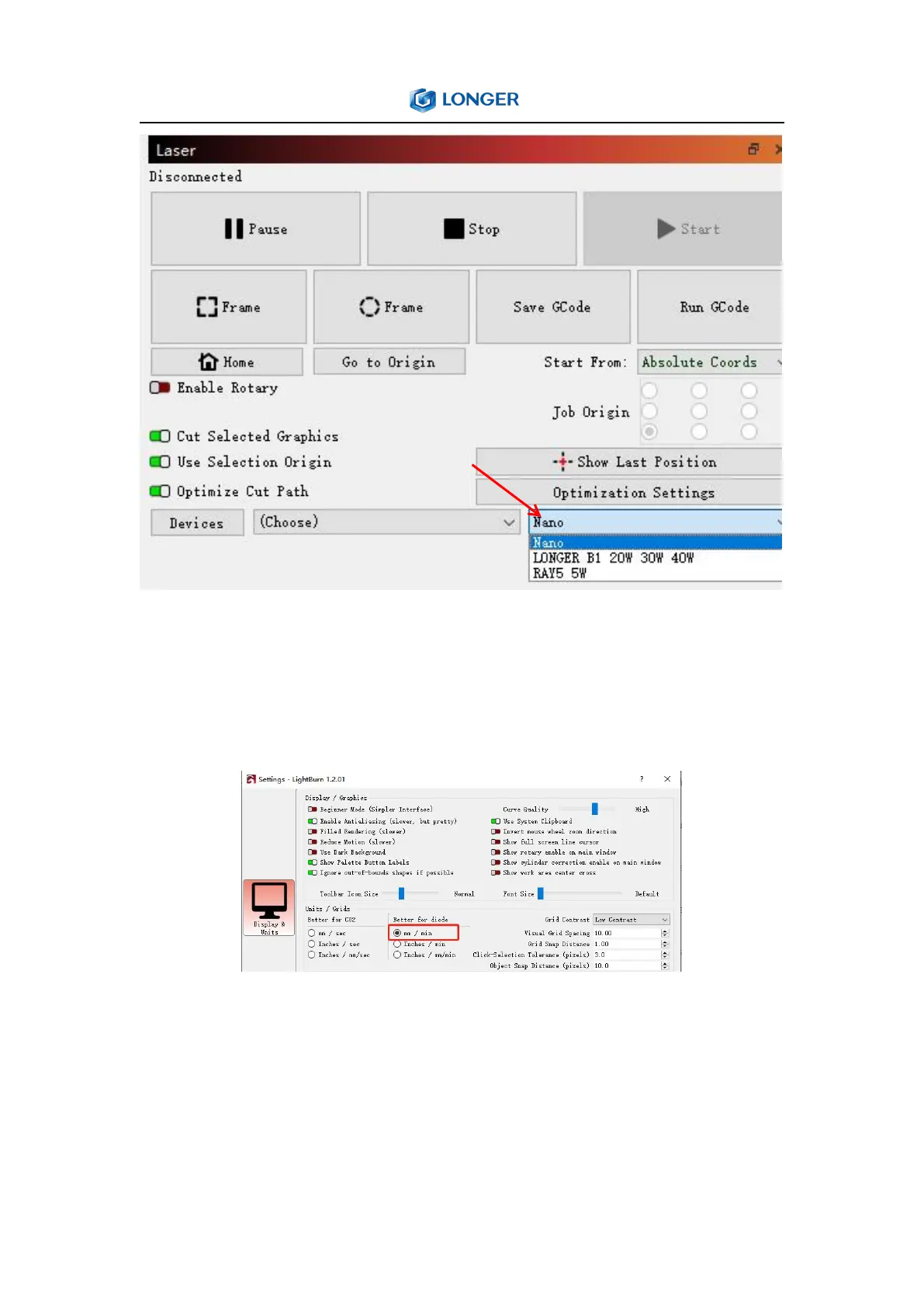 mm/min. That is select 'Edit' on the task bar, select 'Settings', select