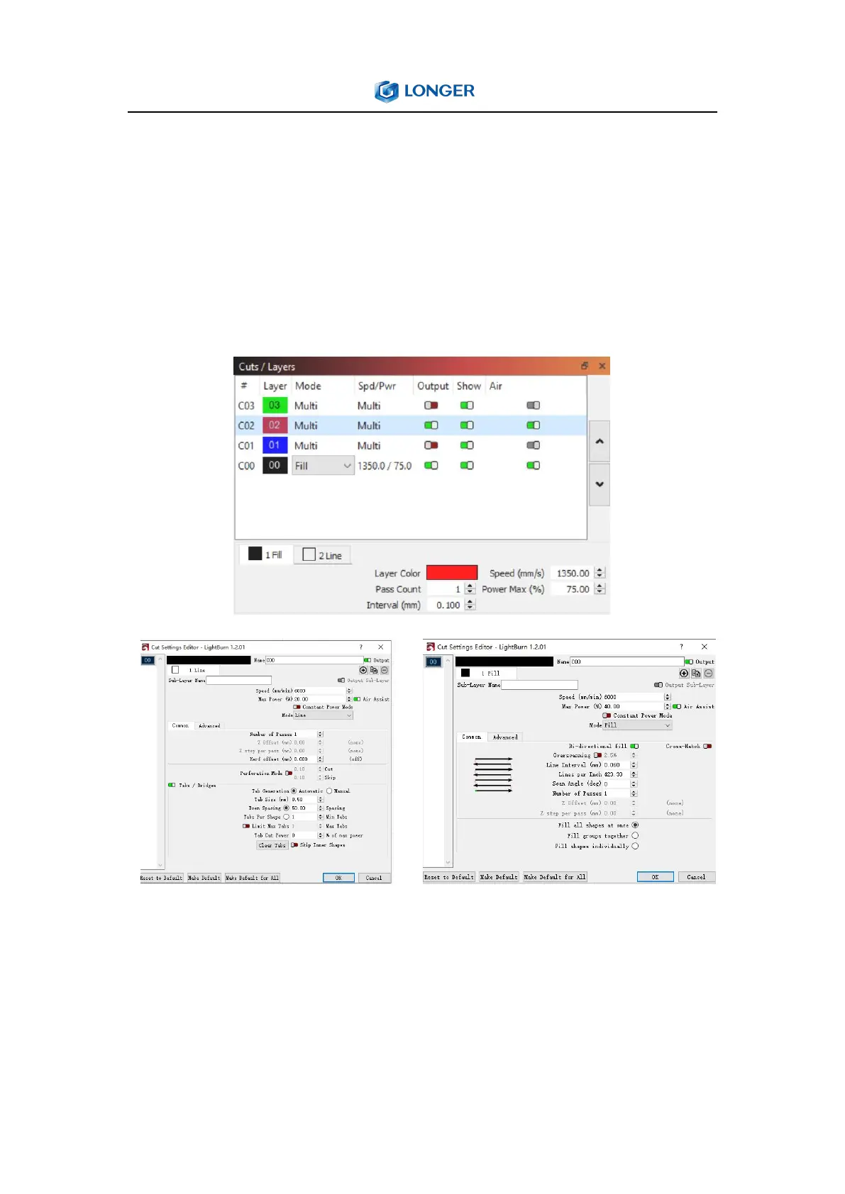 Double-clicking an entry in the layer list, it will bring up a larger Cut