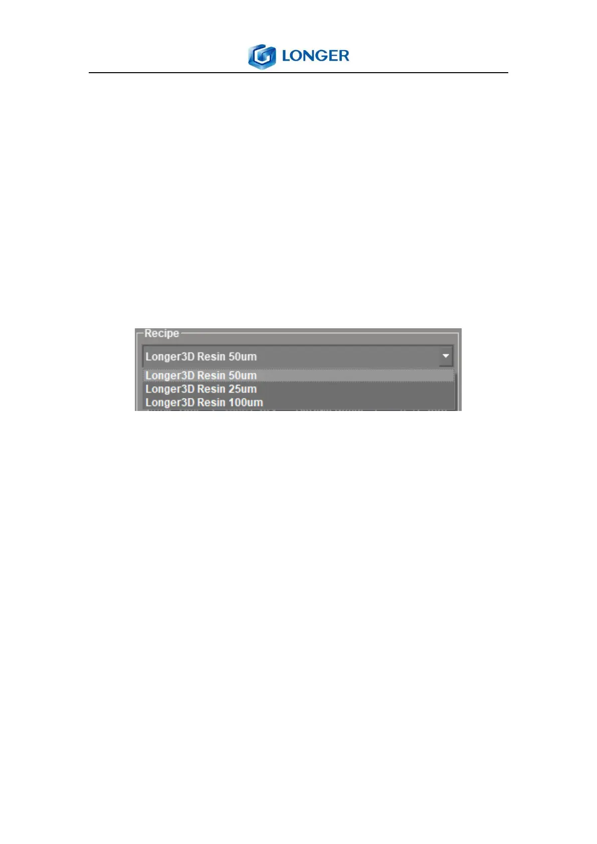 are three defaulted recipes respectively for 25, 50, 100μm layer